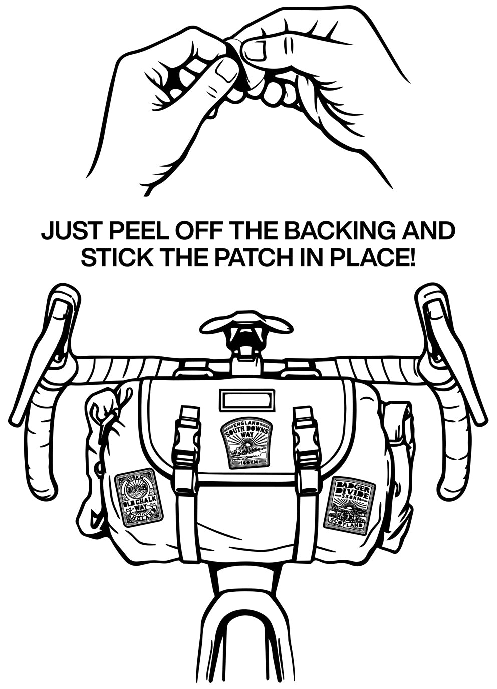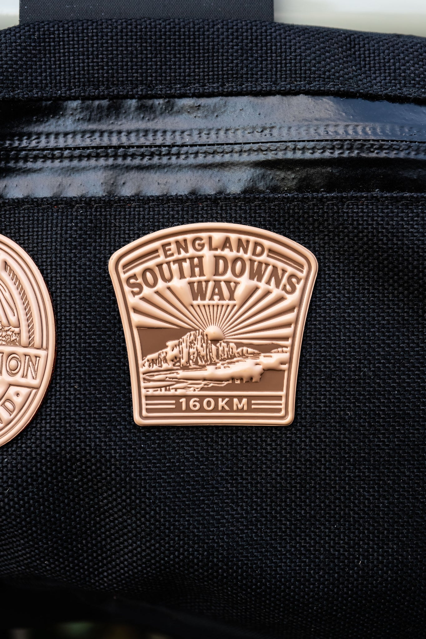 South Downs Way bikepacking patch - Celebrate your cycling adventures with this weatherproof, self-adhesive patch. Perfect for personalising bikepacking bags and marking memorable rides – just peel off the backing and stick it in place!