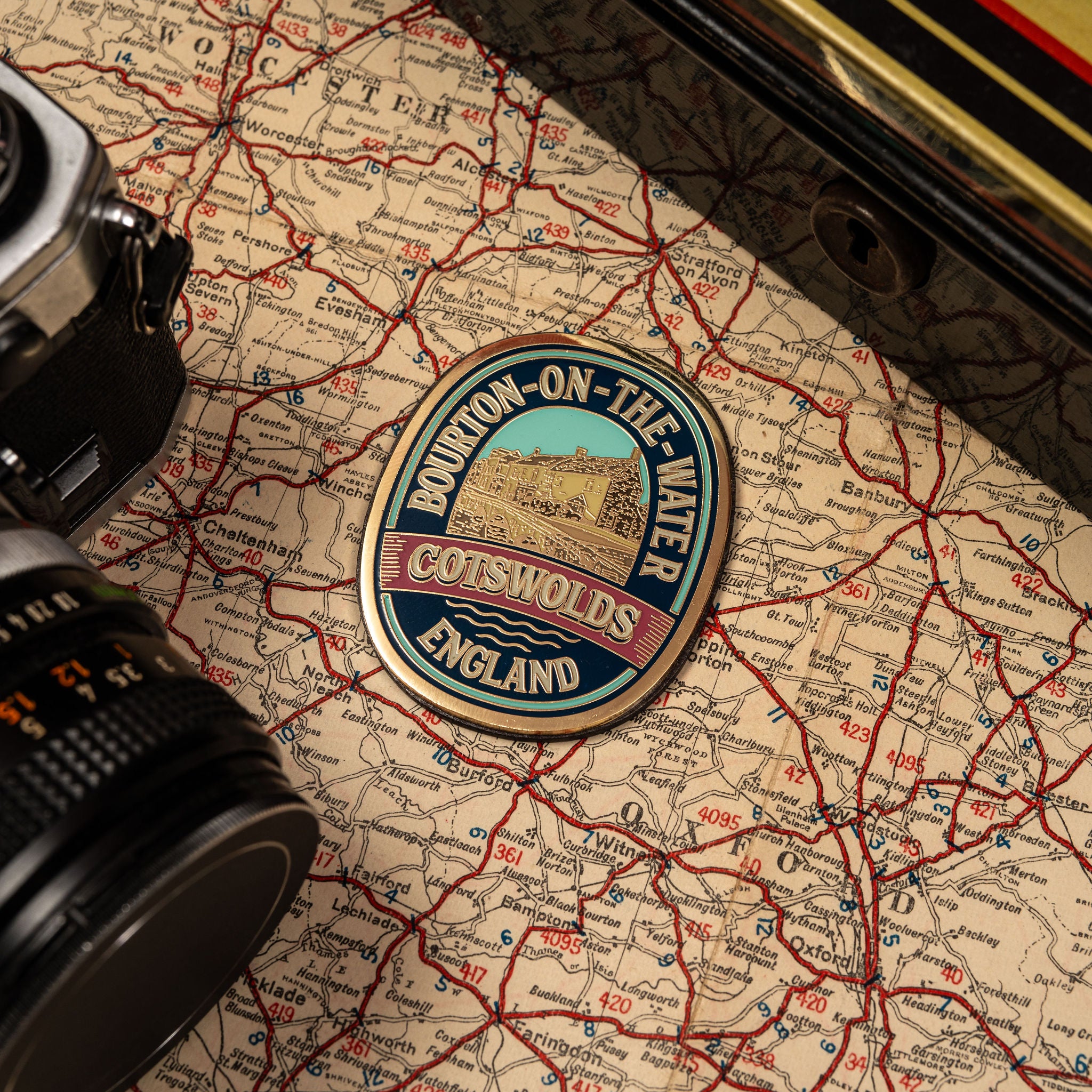 Bourton-on-the-Water fridge magnet, celebrating this traditional Cotswolds village, in the same design as our popular patch.