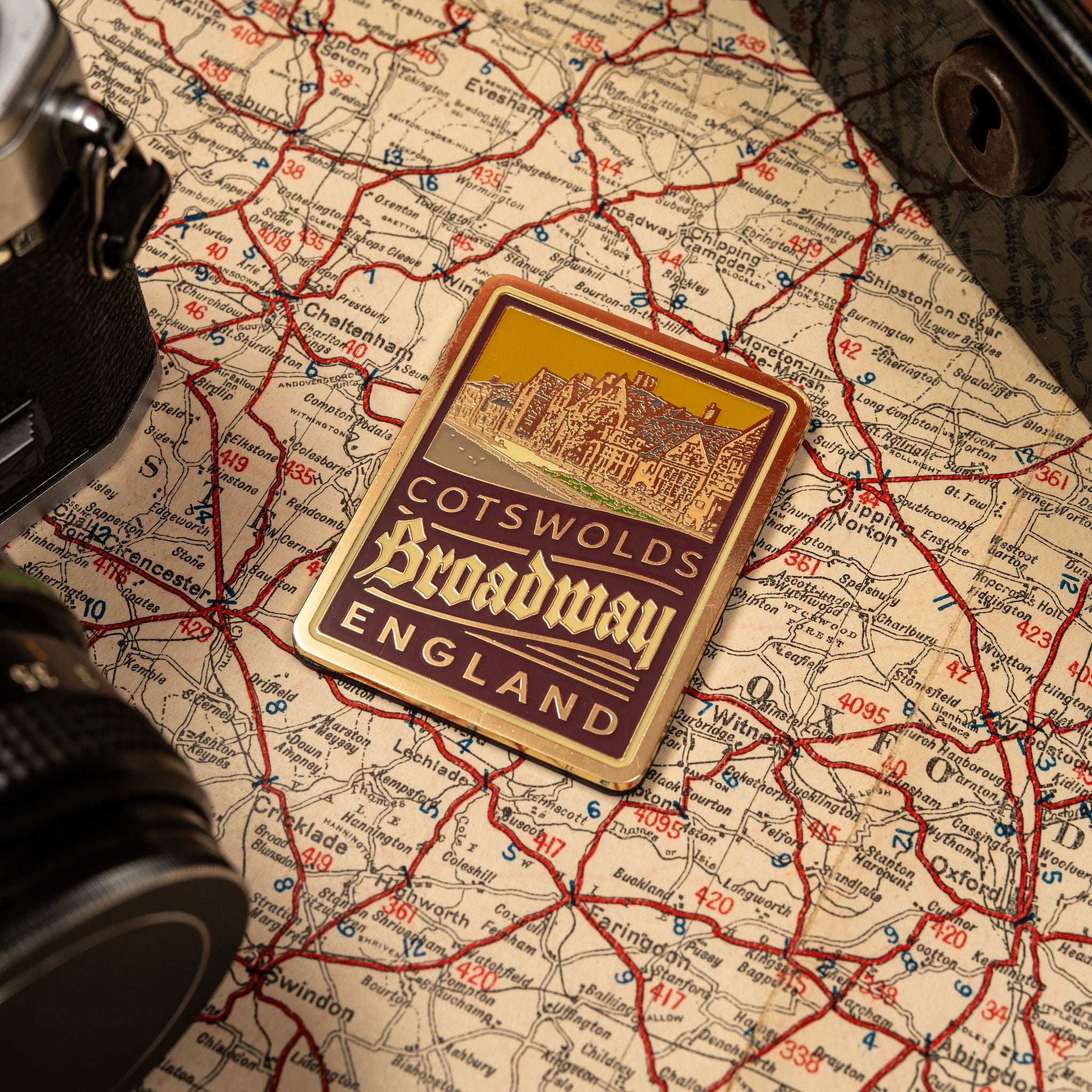 Broadway fridge magnet, celebrating the picture perfect postcard village of Broadway, England, in the same design as our popular patch.