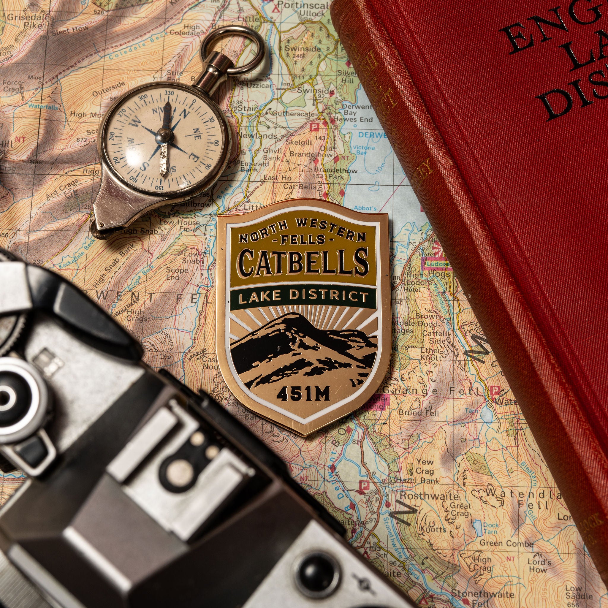 Catbells hard enamel fridge magnet - celebrate one of the best loved hills in the North Western Fells area of the English Lake District with one of these retro mementos, in the same design as our popular patch.