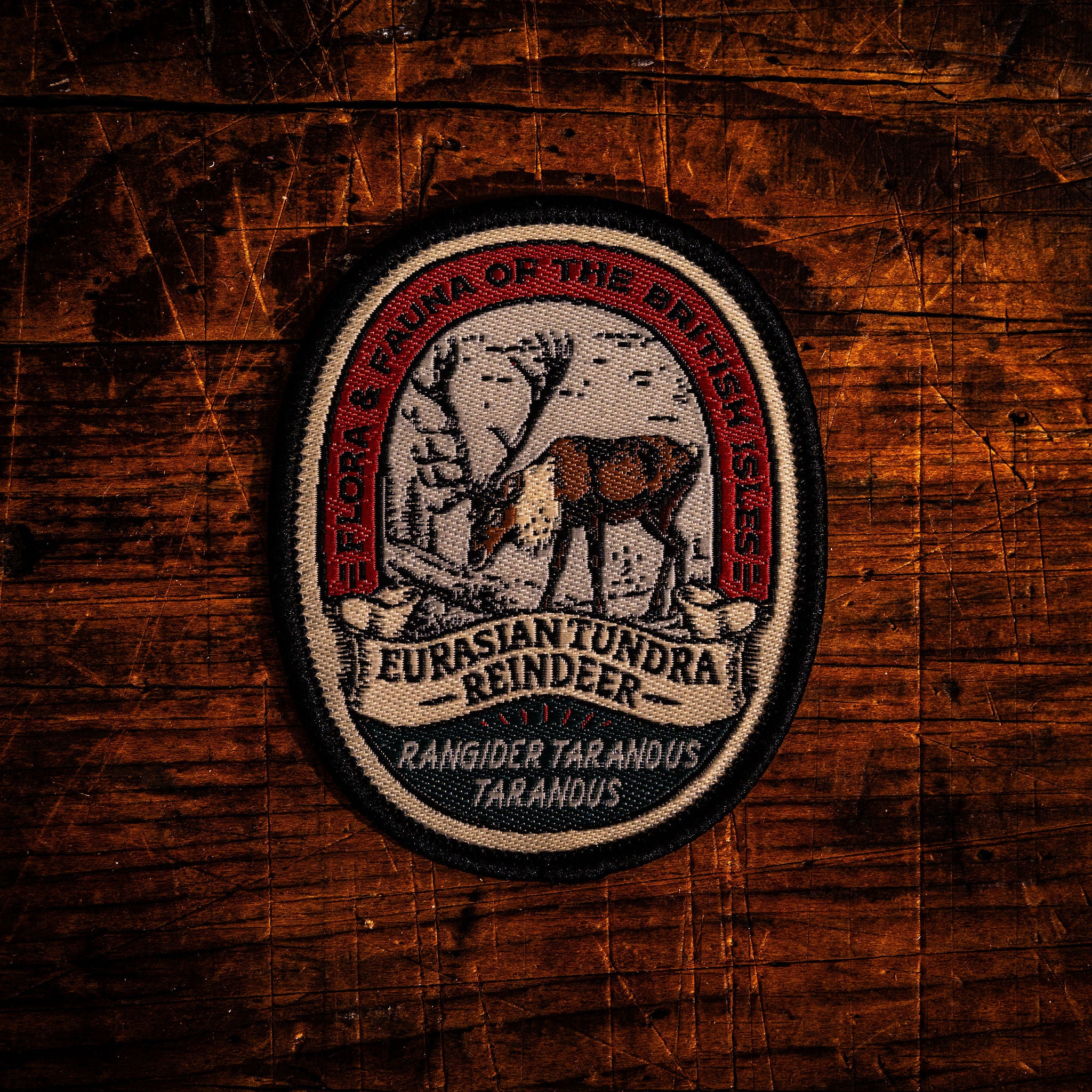Reindeer woven patch - inspired by vintage nature journal illustrations, the inclusion of the Latin name gives these patches something of an encyclopaedic vibe...